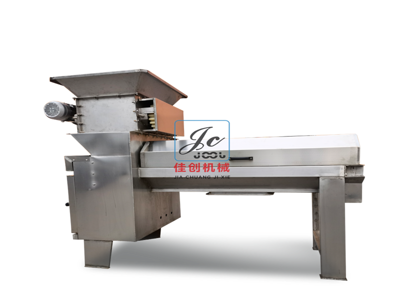 上破碎裝置,經(jīng)過破碎輥的相對擠壓和輥上刀片的利壓,將盞體石榴擠切破分成若干小塊,上破碎裝置