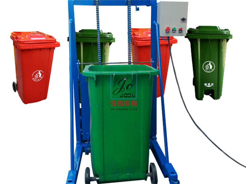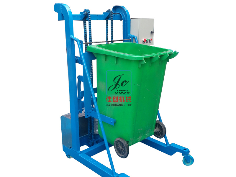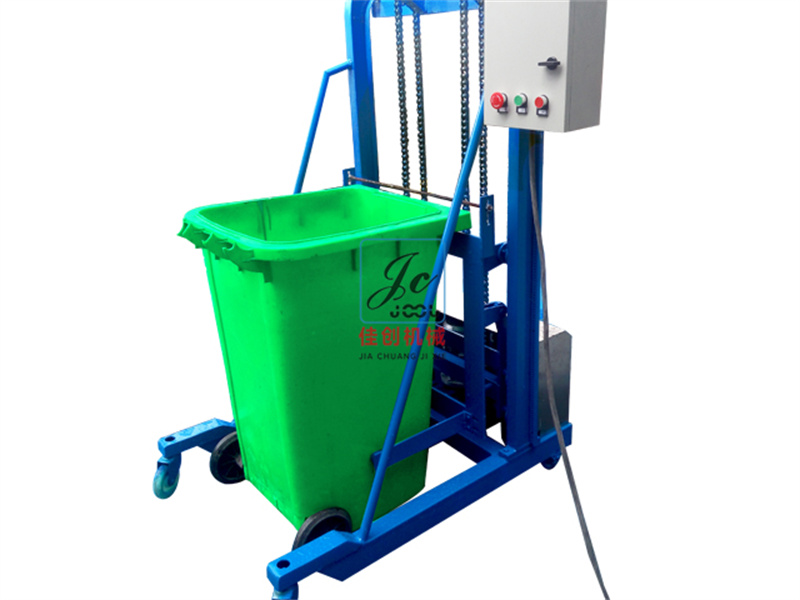 本實(shí)用新型涉及一種垃圾收集裝置,具體為垃圾桶提升翻轉(zhuǎn)傾倒裝置,包括垃圾桶支架和抬升機(jī)構(gòu),所述的垃圾桶支架安裝在抬升機(jī)構(gòu)的活動(dòng)端,抬升機(jī)構(gòu)固定安裝在車架的尾部;所述的垃圾桶支架可以將垃圾桶固定住,并可以將垃圾桶翻轉(zhuǎn)傾倒出垃圾;所述的抬升機(jī)構(gòu)可以將垃圾桶支架和垃圾桶一起抬升。本實(shí)用新型提供的垃圾桶提升翻轉(zhuǎn)傾倒裝置,由于整個(gè)裝置在車尾,可以進(jìn)去一些狹小區(qū)域作用,并且抬升機(jī)構(gòu)簡(jiǎn)單,即便有垃圾散落出,也不容易掛在該機(jī)構(gòu)上,容易清理。